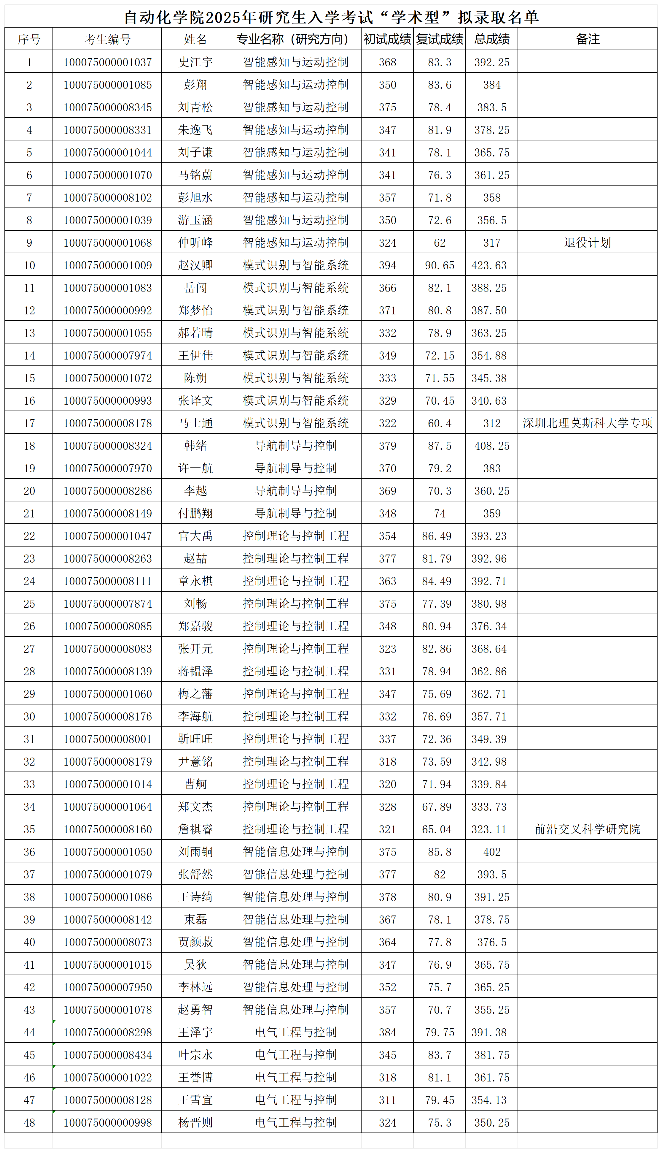 bw必威西汉姆联2025年研究生入学考试“学术型”拟录取名单