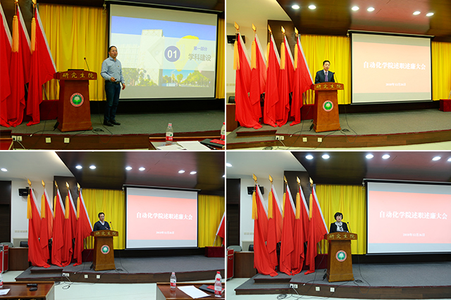 随后,学院领导班子分别就个人本年度分管工作做述职述廉报告,总结履行职责、完成工作、主要业绩和廉政自律等相关情况。