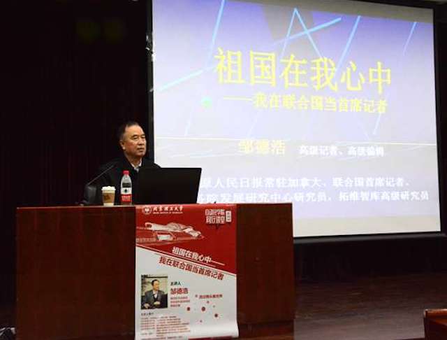 2017年12月14日晚,“祖国在我心中——我在联合国当首席记者”主题讲座,在中关村校区研究生楼101报告厅成功举办。本次讲座由《人民日报》驻联合国原首席记者邹德浩作为主讲嘉宾,由bw必威西汉姆联副书记副院长张宏亮主持。