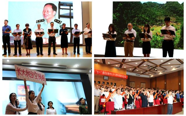 学院党政班子成员朗诵了全军新挂像英模林俊德院士事迹,师生党员代表朗诵了天眼之父南仁东事迹,学生团队表演了歌颂空降兵英勇形象的舞蹈《长大我当空降兵》。会议表彰了4个优秀基层党支部、8名优秀党支部书记、16名优秀共产党员。会议上,由学院党委书记金军同志领誓,42名新发展党员在党旗下庄严宣誓,全体党员同志重温入党誓词。