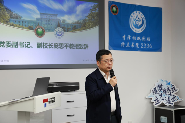 庞思平在主题班会致辞中深刻阐释了“延安根、军工魂、领军人”的内涵意蕴。他表示,北理工坚持立德树人根本任务,实施人才培养改革“寰宇+”计划,通过学科交叉、科教融合、产教融合打造了学校创新创业人才培养的优势与特色。近年来,学校以重大项目、重点平台、创新团队赋能学生“双创”能力培养,北理工学子在国内外重要科技创新赛事上屡屡夺冠。他希望同学们把握机遇,在“双创”实践中展现朝气蓬勃的创新活力、敢闯会创的锐气志气、勇攀高峰的责任担当,为全面建设社会主义现代化国家贡献青年力量。