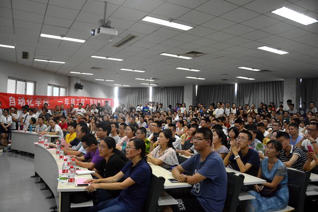 院长夏元清通过“火星科学实验室”好奇号(Curiosity)探测车着陆、波士顿动力的“大狗”等视频,引导走进了“自动控制”世界。他向同学们系统的介绍了控制科学与工程学科的起源及发展,通过诺伯特·维纳、钱学森、卡尔曼等几位自动化领域大家,通过人工智能、中国制造2025等重大研究领域和发展规划的案例向同学们深入浅出地展示了数学和科技创新在自动化领域中的重要作用,鼓励同学们学好数学、灵活运用数学,并积极参与科技创新项目。夏院长语言风趣幽默,讲解富有智慧,让17级自动化学子能够进一步提升专业认知,帮助学生了解学科特点和专业发展方向,增加专业兴趣,让新生真正地了解自动化专业、热爱自动化专业。