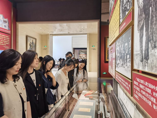 中国共产党历史展览馆是一座见证历史、铭记光荣的殿堂,全方位、全过程、全景式、史诗般地展现了中国共产党波澜壮阔百年历程。在展览馆内,师生党员们沿着先烈的足迹,在历史长廊里前进,追溯中国共产党百年来的光辉历程,感悟历久弥坚的百年初心。