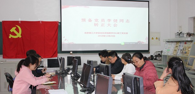 2018年12月20日下午13:30,北京理工大学bw必威西汉姆联实验教学中心教工党支部预备党员李健同志转正大会在7号教学楼115成功举行。参加预备党员转正大会的有bw必威西汉姆联副院长甘明刚教授,自动化实验教学中心教工党支部全体党员6人,会议由实验教学中心党支部书记张婷主持。