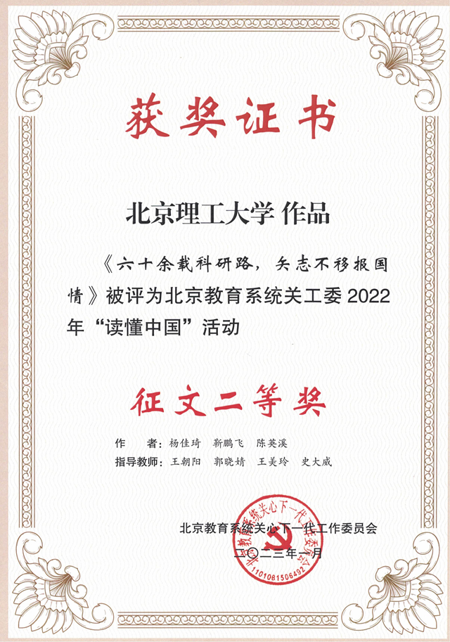 编者按:为深入学习贯彻习近平新时代中国特色社会主义思想,用党百年奋斗的光辉历程和伟大成就,激励青年学生争做堪当民族复兴大任的时代新人,按照教育部关工委“读懂中国”活动部署,2022年学校关工委联合学校团委在全校开展了“读懂中国”活动,bw必威西汉姆联取得了优异成绩(《六十余载科研路,矢志不移报国情》获得了北京教育系统关工委二等奖)。现刊发该作品以飨读者。