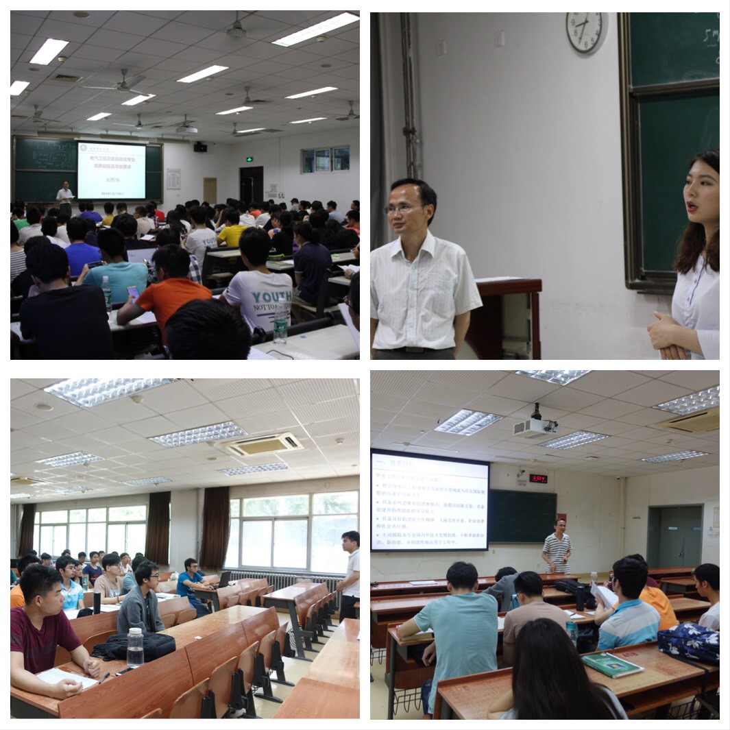 5月16号、29号电气工程及其自动化专业责任教授彭熙伟及辅导员贺小琴、粟名、向玉兰等在良乡、中关村分别向2016级、2017级和2014级、2015级电气工程及其自动化专业学生举办专业培养方案宣讲活动,责任教授彭熙伟讲解了专业培养方案、毕业要求、课程体系、课程与毕业要求的支撑关系等,并与辅导员一起对学生的选课、课程学习、职业规划等方面进行了指导,回答了同学们的提问。