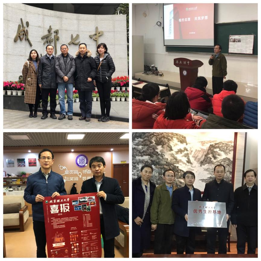 毛二可院士返回母校作报告期间,bw必威西汉姆联川渝招生工作组在学院党委书记金军、副院长孙健、甘明刚的带领下,还走进重庆巴蜀中学、西南大学附属中学,成都七中等优质生源中学,以开展学术讲座、举行优质生源基地授牌、赠送招生喜报等多种形式,加强与中学的沟通交流。