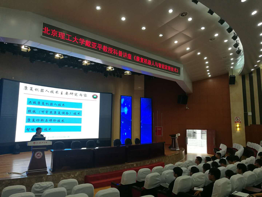 戴亚平围绕康复机器人技术主要研究内容:上肢康复机器人技术、假肢(可穿戴康复设备)技术、康复诊断与评价技术、智能家居技术等方面内容深入浅出的为在场学子进行了介绍。