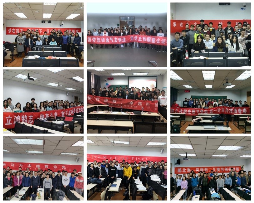 06111601班主题为“梦在前方,路在脚下,且行且思,必将图南”,邓志红表示见证了同学们两年的成长,强调人需要有目标才能激发潜力,并要注重综合能力的培养;杨东晓鼓励了同学们的努力,勉励大家永葆活力,为目标的实现继续奋斗。