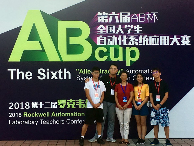 “AB杯”全国大学生自动化系统应用大赛是由教育部高等学校自动化类专业教学指导委员会主办的自动化应用领域的创新型竞赛。本次大赛以罗克韦尔自动化公司旗下的工业以太网、集成运动控制和集成安全的中型控制系统为核心平台,以学生实际动手操作和自主研究、探讨机器安全解决方案为竞赛形式,考核学生的自主研究、系统设计、实际操作、分析调试能力。我院参赛学生在指导老师的指导下,反复模拟演练,做了充分的前期准备;在决赛中,表现从容镇定,基础操作和现场发挥都得到组委会和罗克韦尔公司的认可和好评。