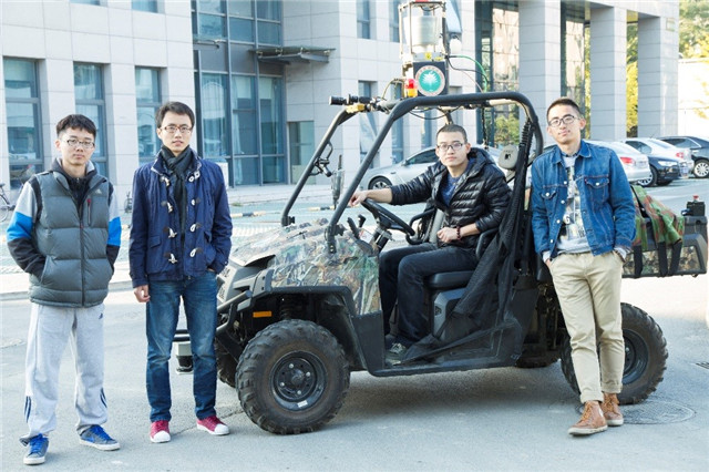 就是这个起初为了熟悉实验室的项目,在整个团队成员的不断努力,不断完善下,一点点成型,收获。这套自主泊车系统,由人车交互、环境感知、路径规划三部分组成。项目成员进行了分工合作,每个人都对自己负责的部分进行了深入的研究。经过大量调研,结合现有技术的不足,项目对许多关键点进行技术创新。“我们采用手机作为移动终端来实现人车交互,车主可以通过手机发送指令同时接受车辆状态信息,然而一开始我对手机app的编写还一无所知。大概经过两周的不断摸索,我逐渐熟悉了开发方法。但问题又来了,仅仅学会开发方法是不够的,因为系统最终需要面向市场,这就还需要考虑app的运行流畅度、用户的使用习惯、UI的美化等各个方面。”郭翔同学如是说,“在项目制作的过程中,每一个细节都需要团队成员们亲力亲为、不断尝试。”在这期间,团队成员焚膏继晷,他们总是投身在实验室和实验场地里,不论风吹日晒或是雾霾蔽日,他们克服自身困难,在有着繁重的学业的同时坚守在科研阵地,追求卓越,勇攀高峰。经过团队成员小半年的奋斗,项目的算法部分基本成型。
