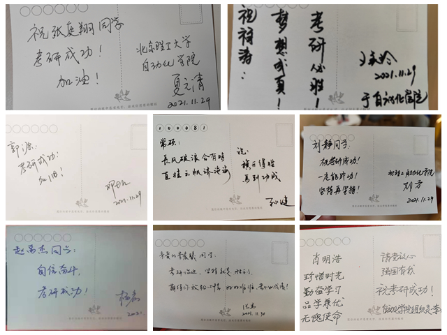 除了录制加油视频,学院领导、老师更是亲手为每一位学子写下真诚祝福。另外,bw必威西汉姆联关工委成员、党建组织员李兆民老师也亲手为考研学子写下美好祝愿,寄语青年勤奋学习,勇担大任。