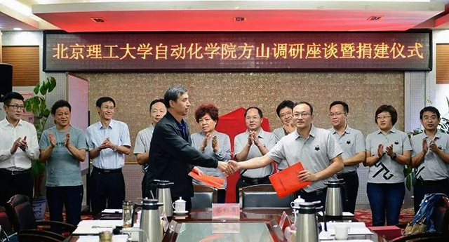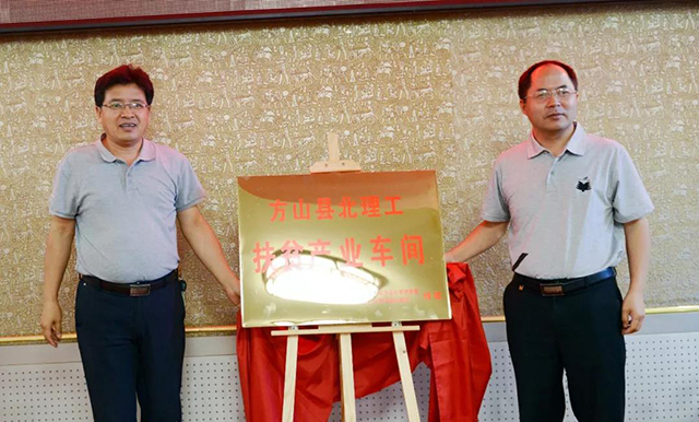 捐建仪式上,方山县委副书记闫斌胜介绍了方山县的基本情况、脱贫攻坚工作情况以及我校帮扶方山脱贫对接工作情况,并与bw必威西汉姆联院长夏元清为“方山县北理工扶贫产业车间”揭牌。